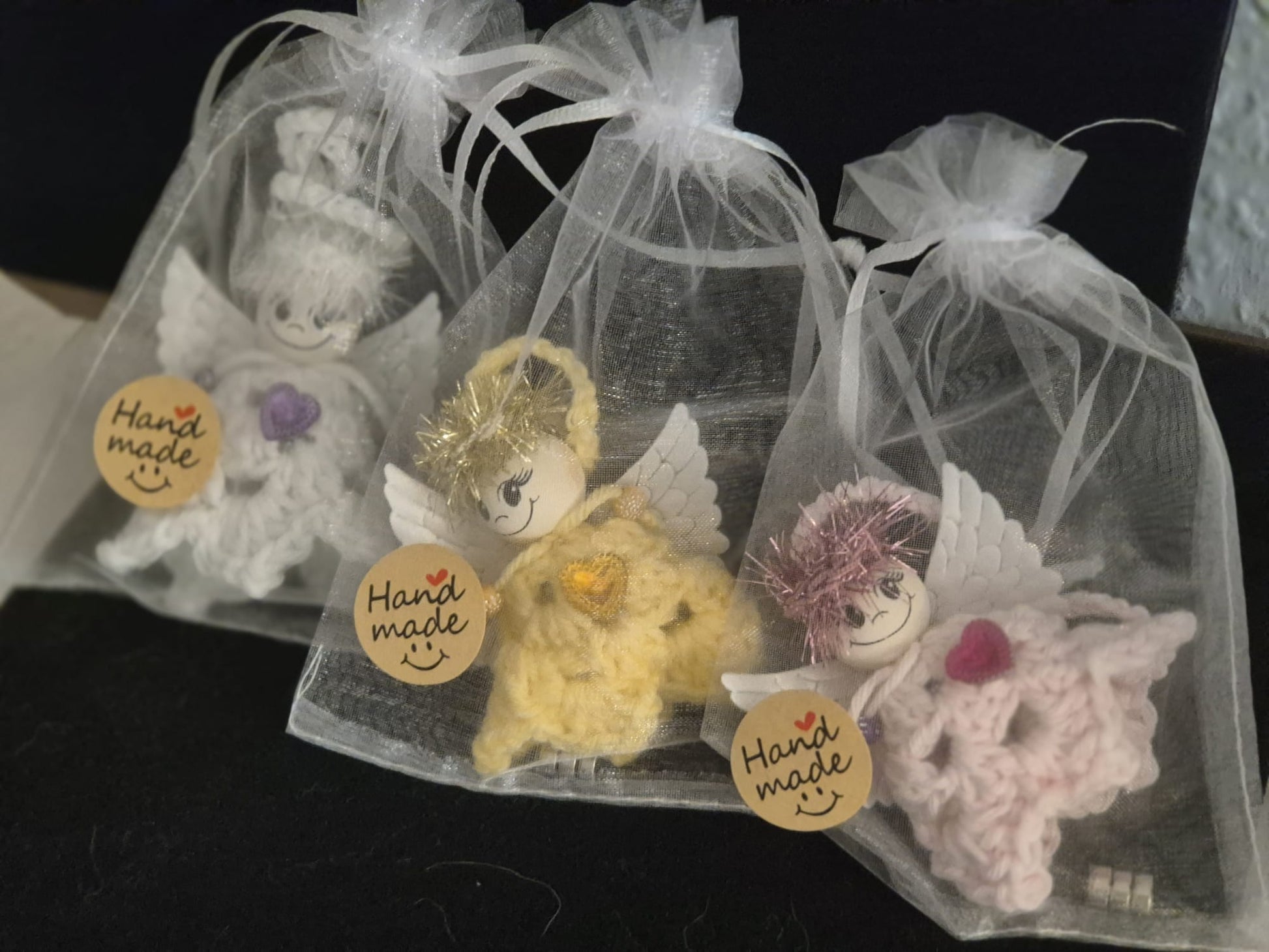 Jeder Engel wird handgefertigt mit viel Liebe zum Detail und ist daher ein echtes Unikat. Dank der praktischen Aufhängeschlaufe kann er leicht an Fenstern, Tannenzweigen oder Wänden befestigt werden.