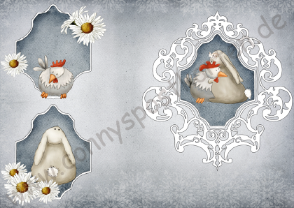 Ostern - grau - Huhn und Hase mit Rahmen