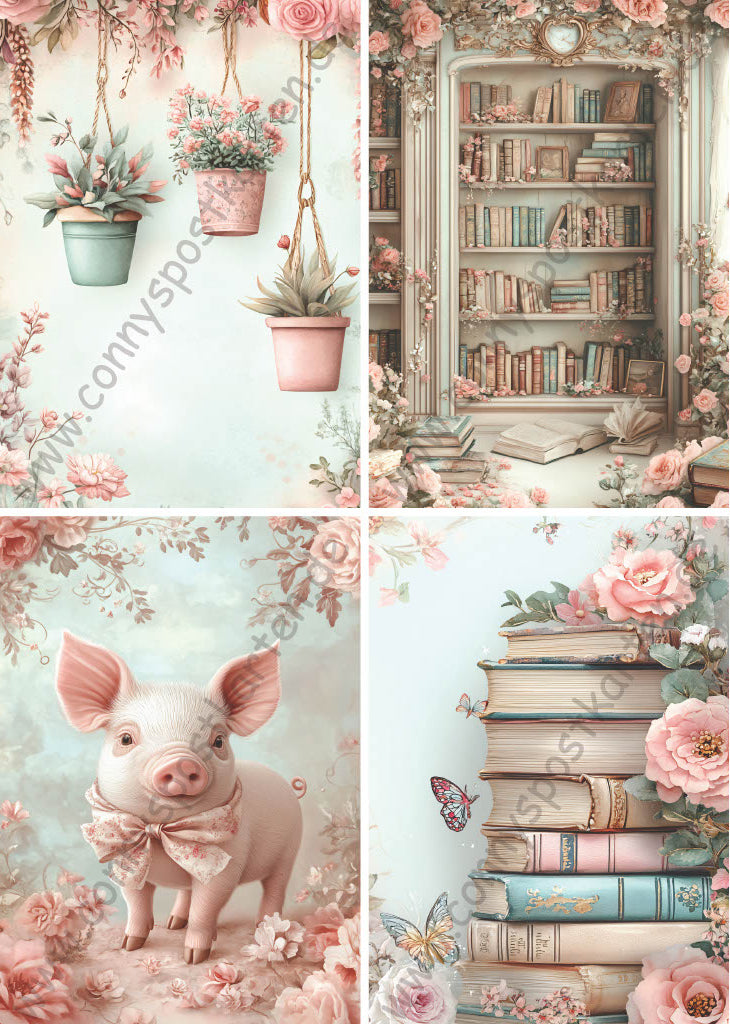 Verschiedenes - Rosa/Mintgrün - Set mit 4 Karten